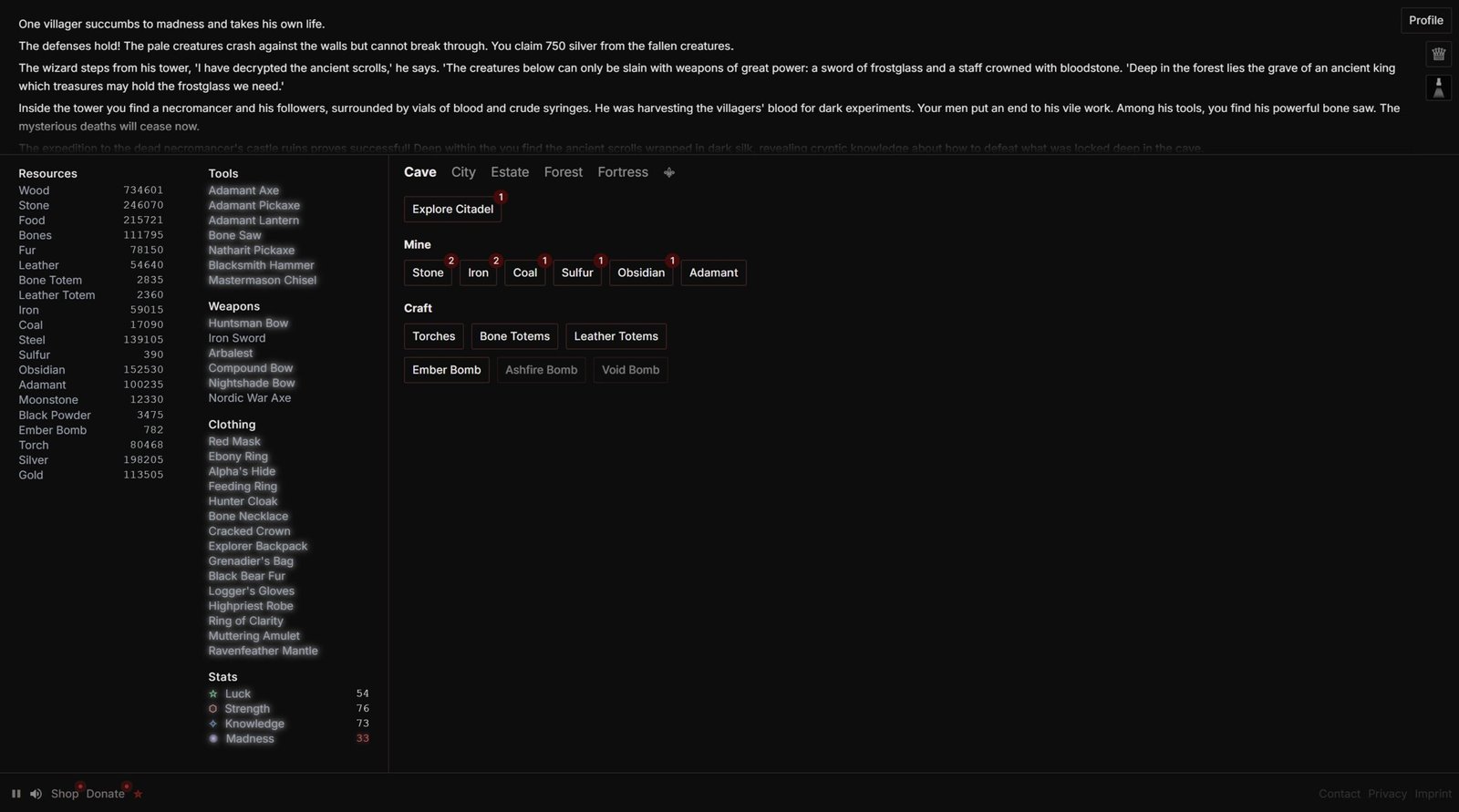 a_dark_cave Games released a new game called A Dark Cave and the version is 1.0. Explore a cruel mysterious world in this soulslike click adventure title. Gather resources, craft, build and advance the story.