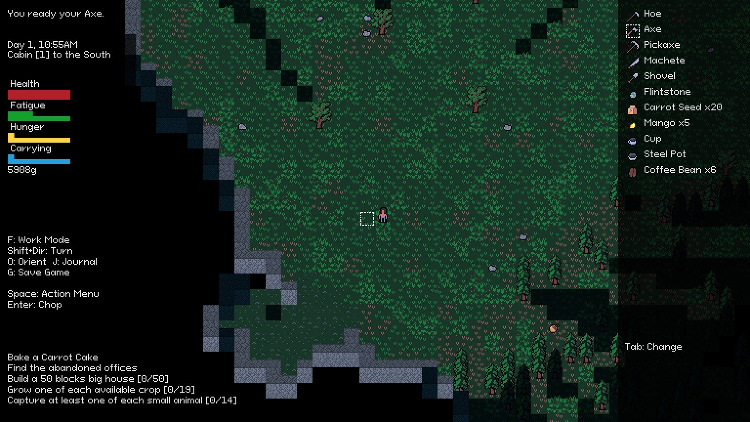 Emerald Woods is a game about exploration, survival, and creativity. While it shares many similitudes with the Roguelike genre; Emerald Woods is not a dungeon delver and should not be approached expecting tactical battles.