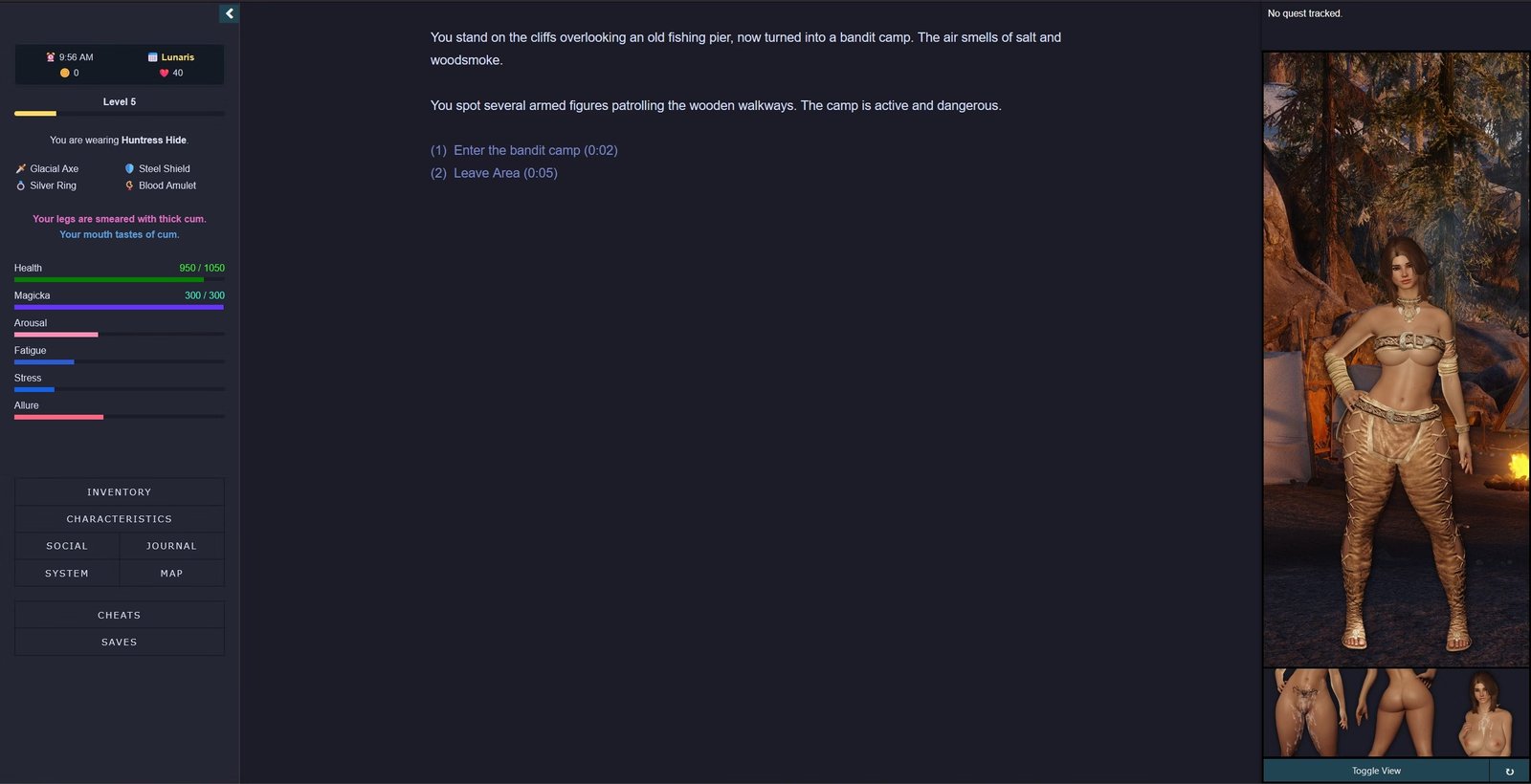 - Optional Content (Toggleable): NTR / Cuckolding, Futanari (Player & NPC options separately), Hypnosis / Mind Control, Watersports, Inflation / Body Expansion, Monsters (Each Monster category is separately toggle-able)