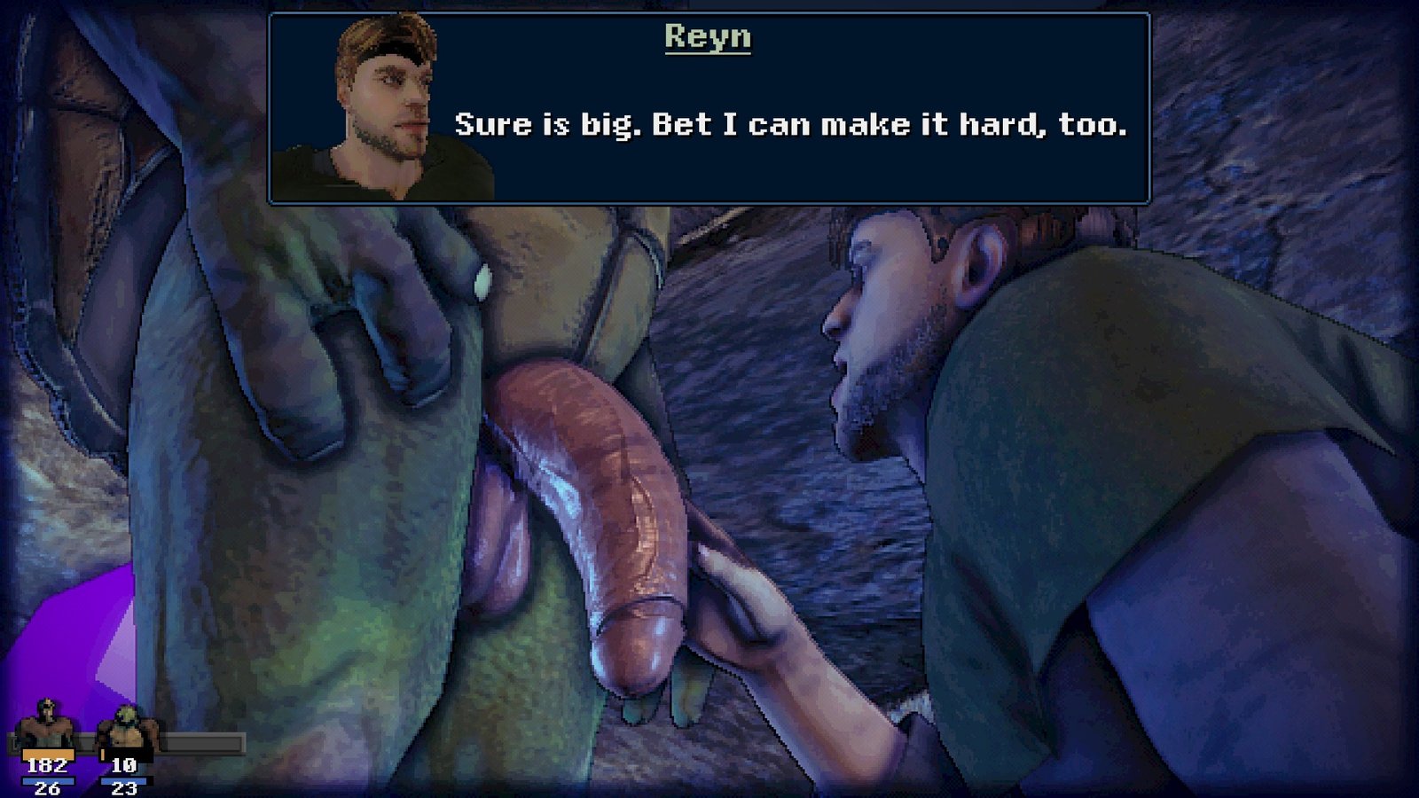 Orc Bastion is a gay adult-oriented JRPG about serving orcs, demons, men and monsters. Fight for peace between mankind and the denizens of hell with your orc master, find allies and become a force to be reckoned with — while meeting and intimately getting to know all sorts of guys and monsters on the way. Reyn is a newly drafted soldier. Along with other young and inexperienced men, he’s thrown into a conflict with demonkind. Reyn’s very fate and soul ends up in the hands of Rok, an orc warrior. Bound together until death, they intend to find a way to bring peace to their home.