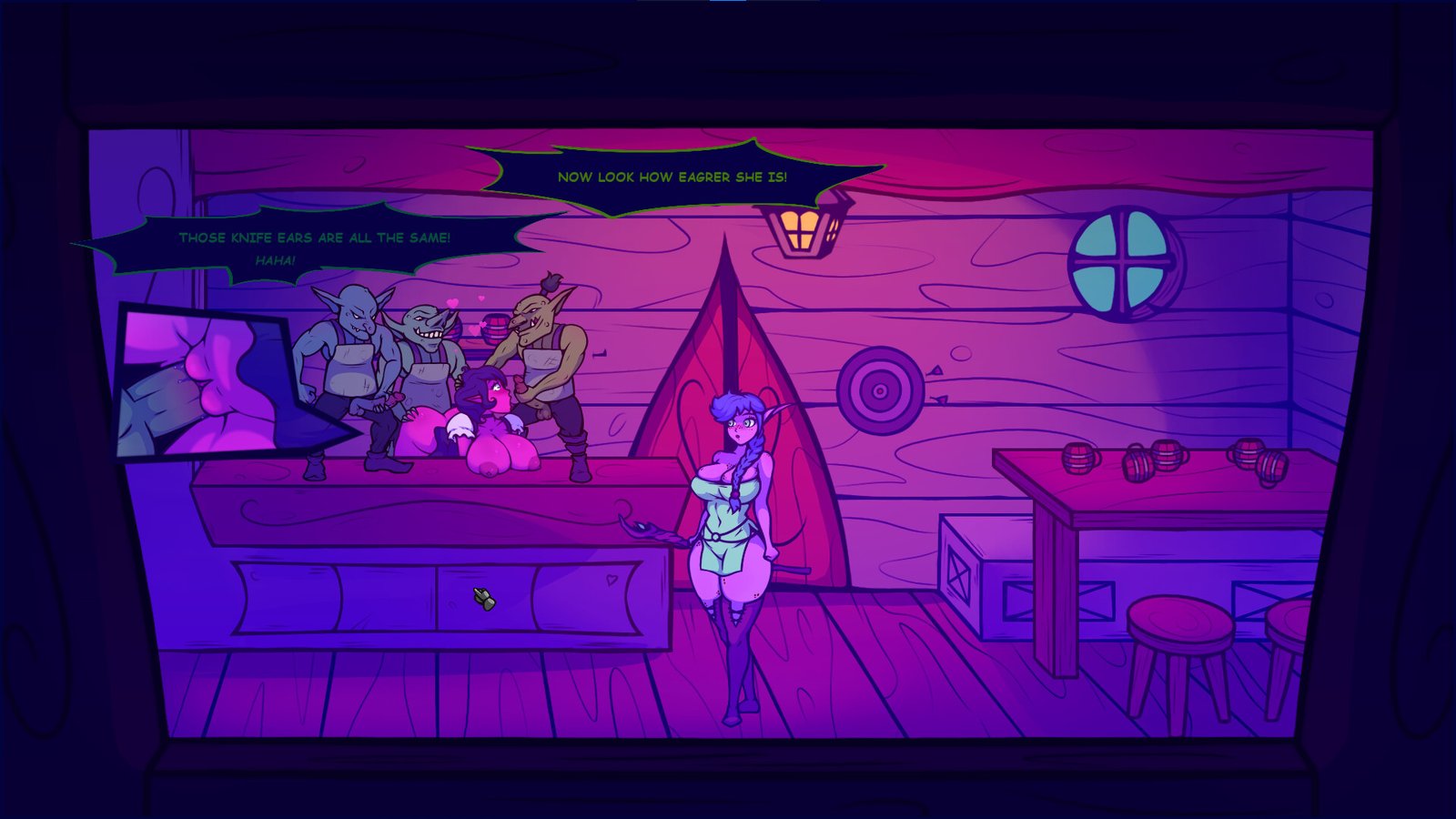 Tales of the Moon is an Adult, Adventure video game. Developed and published by Cella, TinyHat Studios. It was released on 9 Feb, 2026 for Windows. A light-hearted point & click adventure, play as a spunky elven girl as she tries to save her village from a horde of unruly (and very horny) orcs! A light-hearted point & click adventure, Tales of the Moon follows the exploits of a spunky elven girl as she must overcome a multitude of big, hard, and hairy obstacles in order to save her village!